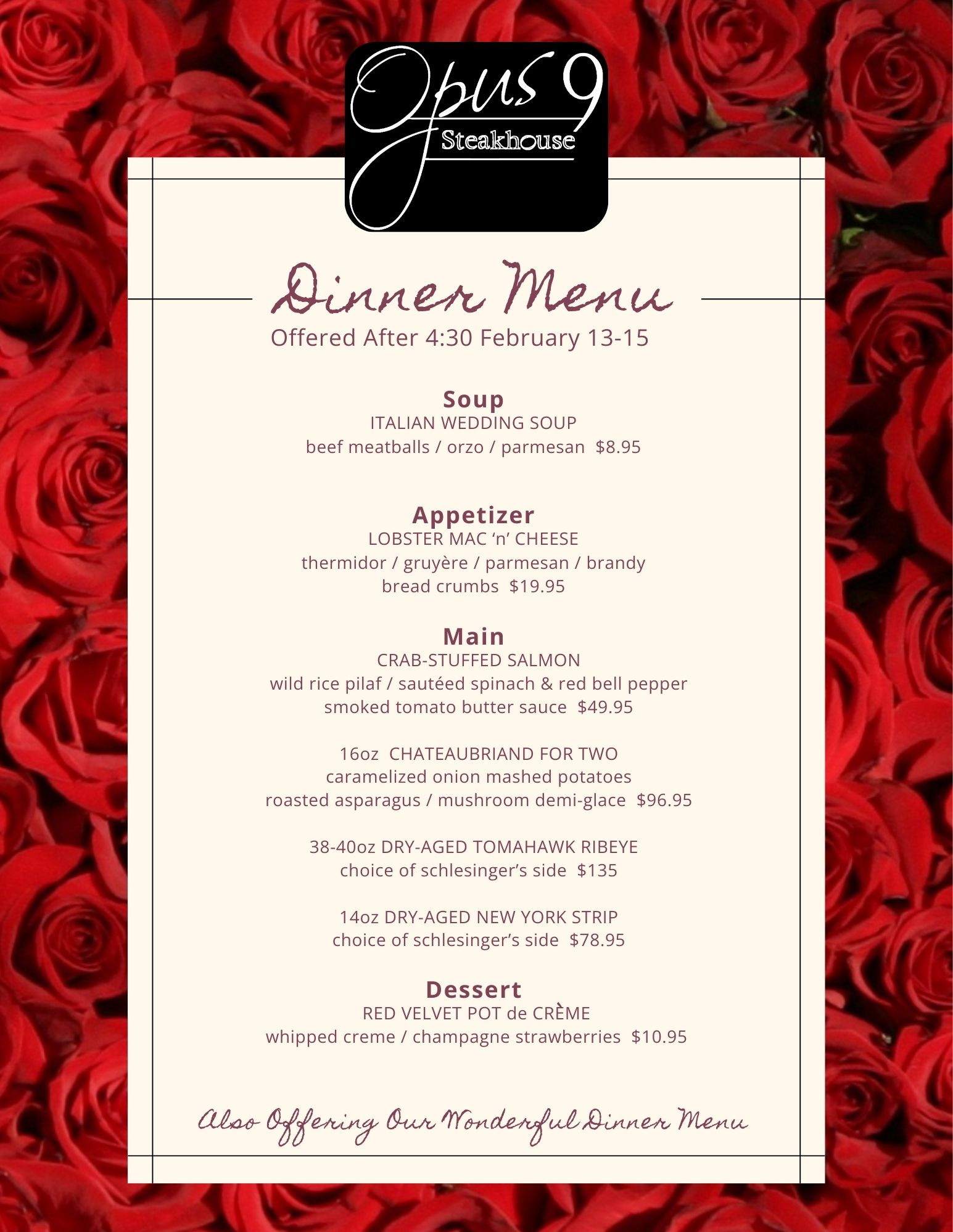 Dinner / 3:00pm – 9:00pm